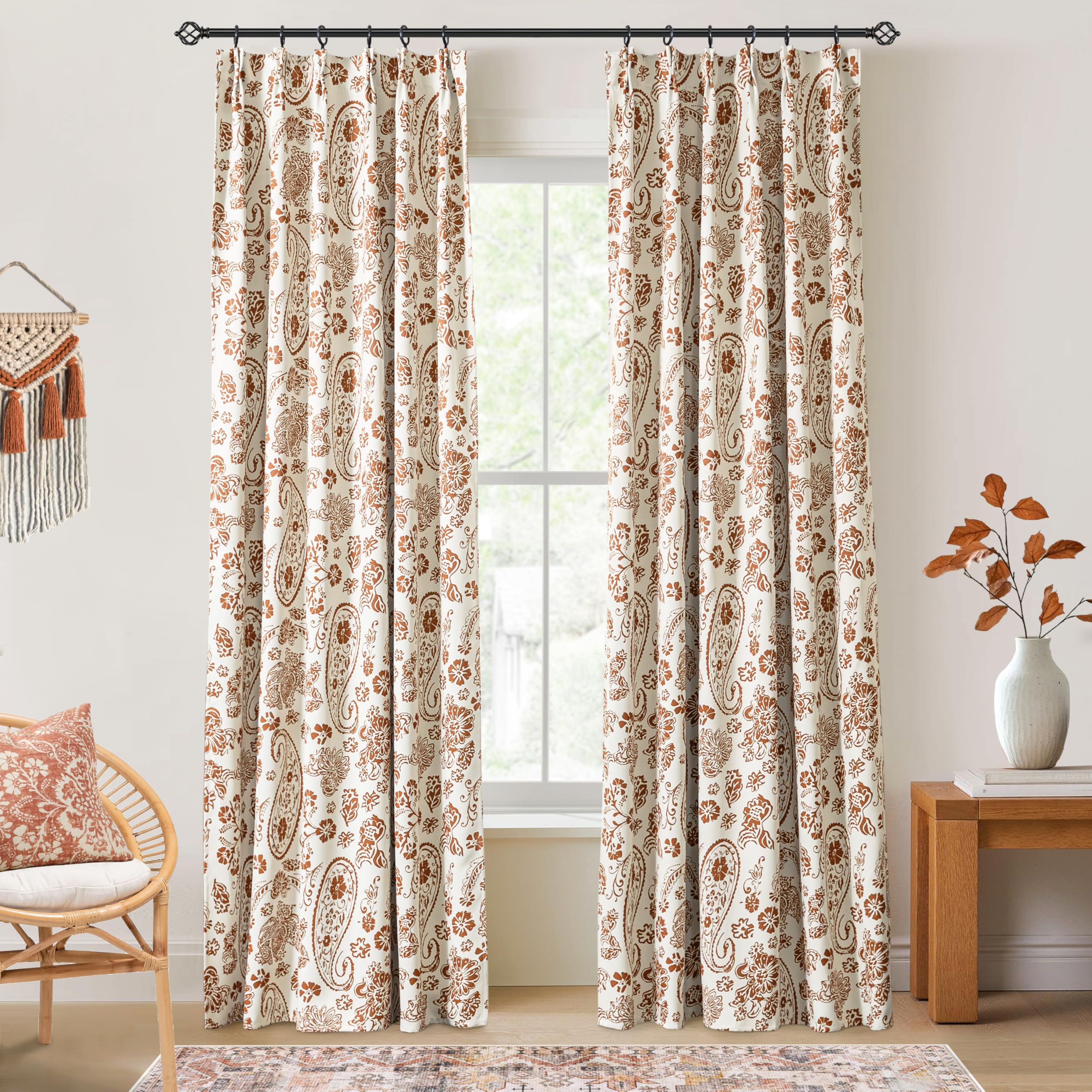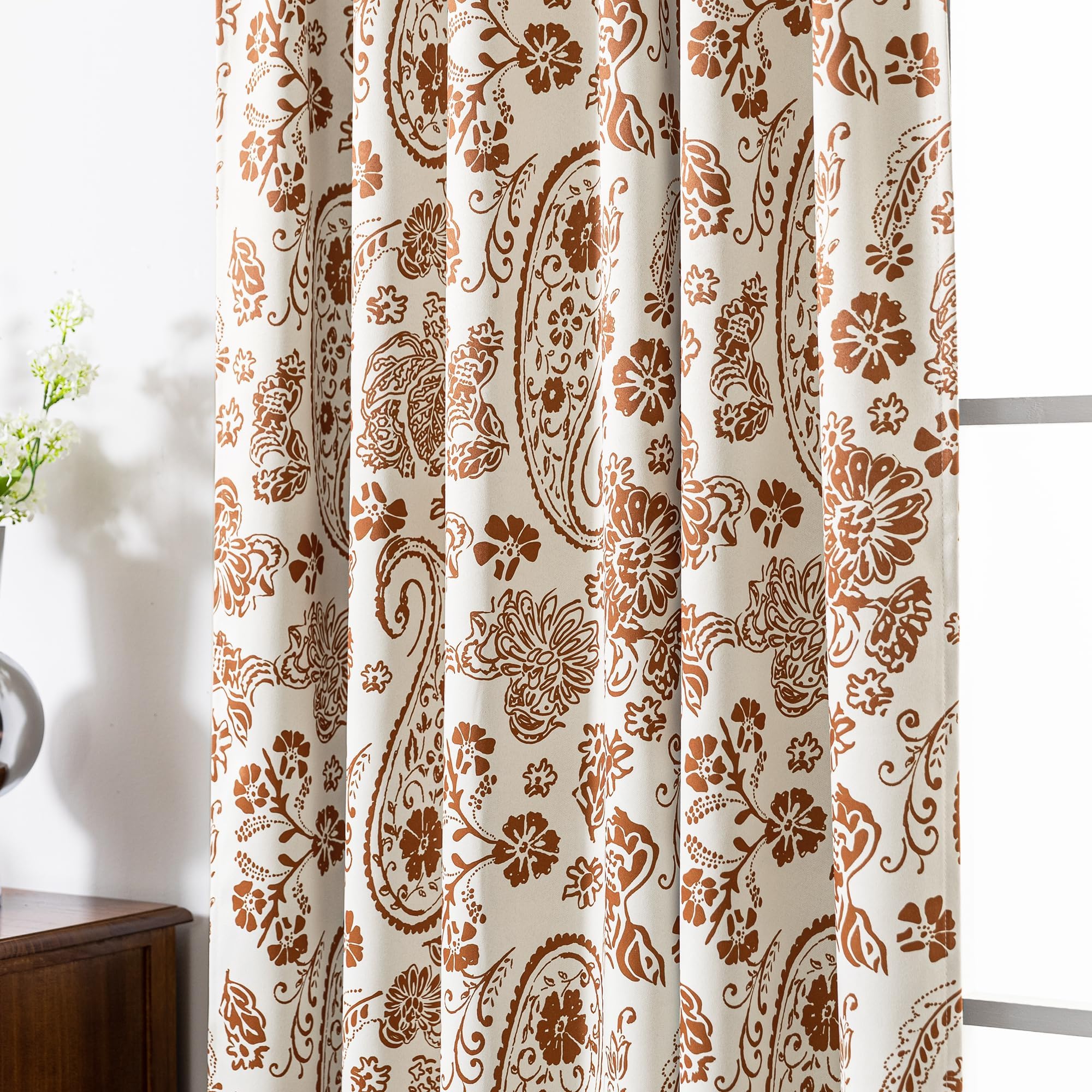 Add warmth and timeless pattern to your space with this ivory curtain panel, designed with an elegant allover paisley floral print in soft rust and brown tones. The detailed botanical swirls and classic ornamental motifs create a rich decorative look that feels cozy, inviting, and full of vintage-inspired charm.