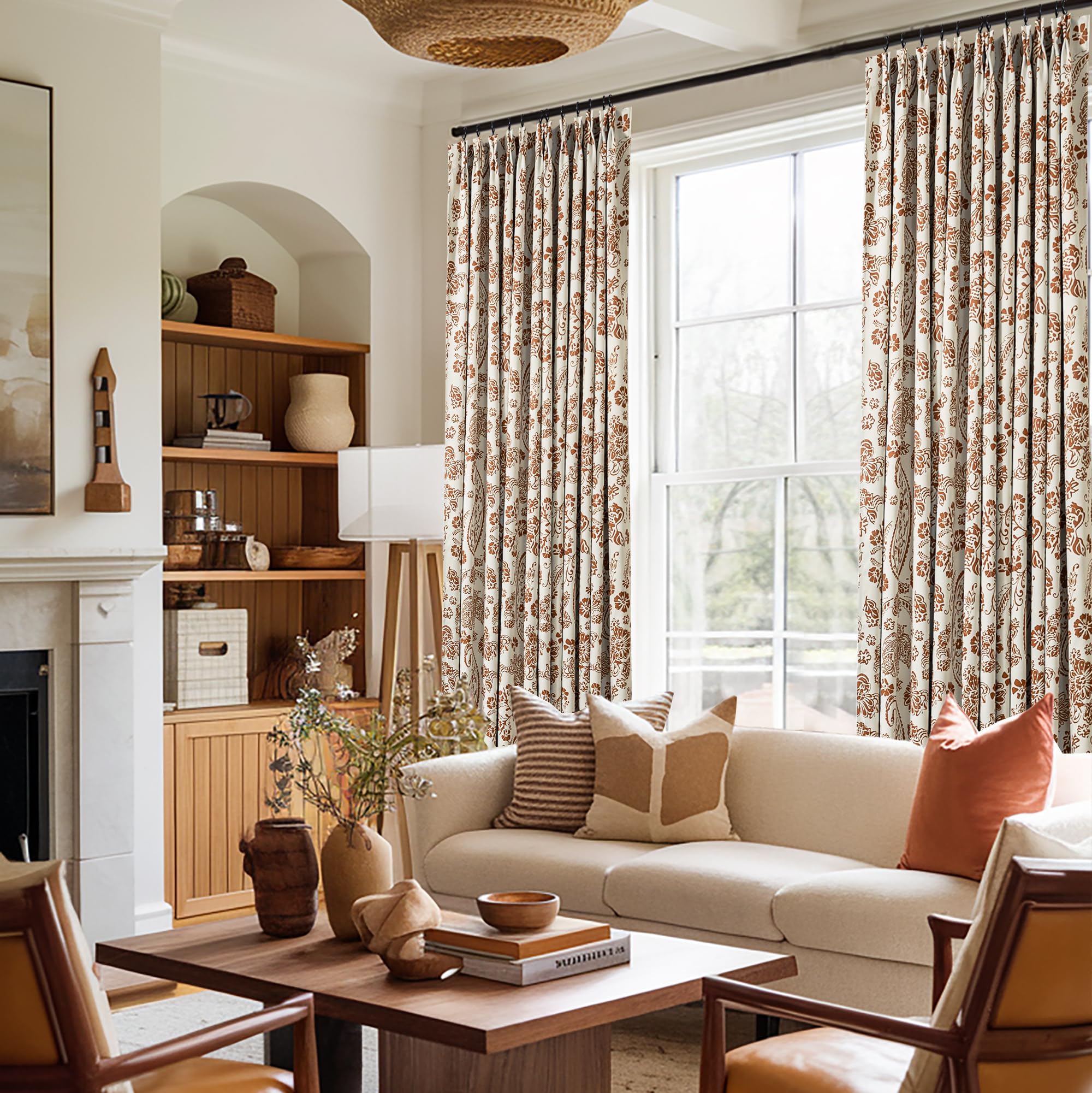 The neutral ivory background keeps the design light and airy, while the warm earthy pattern brings depth and character to the room. With its 84-inch length, this curtain offers a graceful floor-length finish that works beautifully in bedrooms, living rooms, guest rooms, or reading corners. The versatile color palette pairs well with boho, farmhouse, cottage, traditional, and rustic interiors.